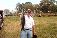 My partner for the weekend was E.W. EarthWorm Coombs. It had been a long time since we had fished together and I knew wed have a good time. EW has enough tales to keep you laughing all weekend. Every once in a while hell even catch a fish. We started our practice day fishing the flats between Fish Pond Drain and Spring Creek. We found some good fish almost immediately and left them for tournament day. We next explored the flats west of Fish Pond but found only a few bedding fish but not the concentration of roaming bass we were looking for. Next we checked out Fish Pond Drain and found some small fish but nothing that we wanted to stay around for.