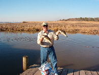 Plan B. We worked some creeks, fighting a huge outgoing tide, wind, and water blowing through the back end made fishing miserable not to mention non productive. I got a phone call about noon, it was Walter and Dave. Their batteries were gone from fighting the wind and current and no fish. As we met other anglers we heard the same story. No hits, no bites, no fish! Ron and I both had a hit and should have put fish in the boat but late hook sets do not help on days like that.